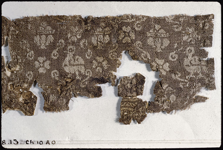POP | Plateforme ouverte du patrimoineTissu : fragment, motifs d'oisillons et de fleurettes, sur fond brun