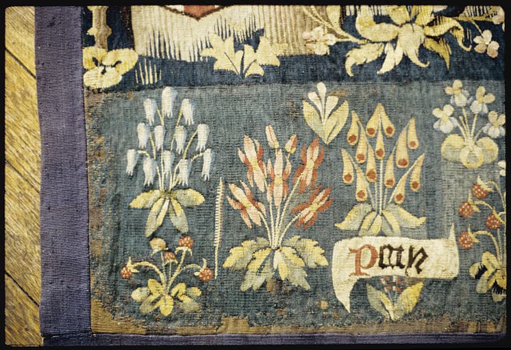 POP | Plateforme ouverte du patrimoinePièce murale (Tenture de la vie de saint Pierre) : 'La vision des animaux impurs, le baptême du centurion Corneille, l'arrestation de saint Pierre', détail du coin inférieur gauche (détail)