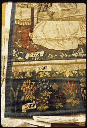 POP | Plateforme ouverte du patrimoinePièce murale (Tenture de la vie de saint Pierre) : 'La crucifixion de saint Pierre', détail de l'angle inférieur gauche (détail)