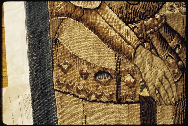 POP | Plateforme ouverte du patrimoinePièce murale (Tenture de la vie de saint Pierre) : 'La crucifixion de saint Pierre', détail des mains d'un personnage (détail)