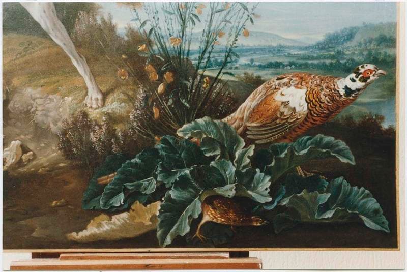 tableau : chien et faisan, détail