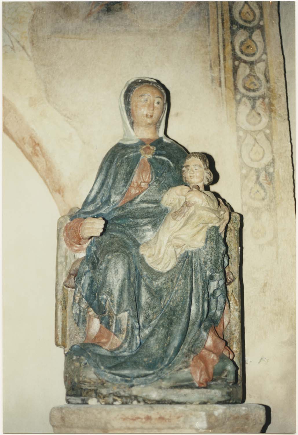 statue (petite nature) : Vierge à l'enfant assise, vue générale