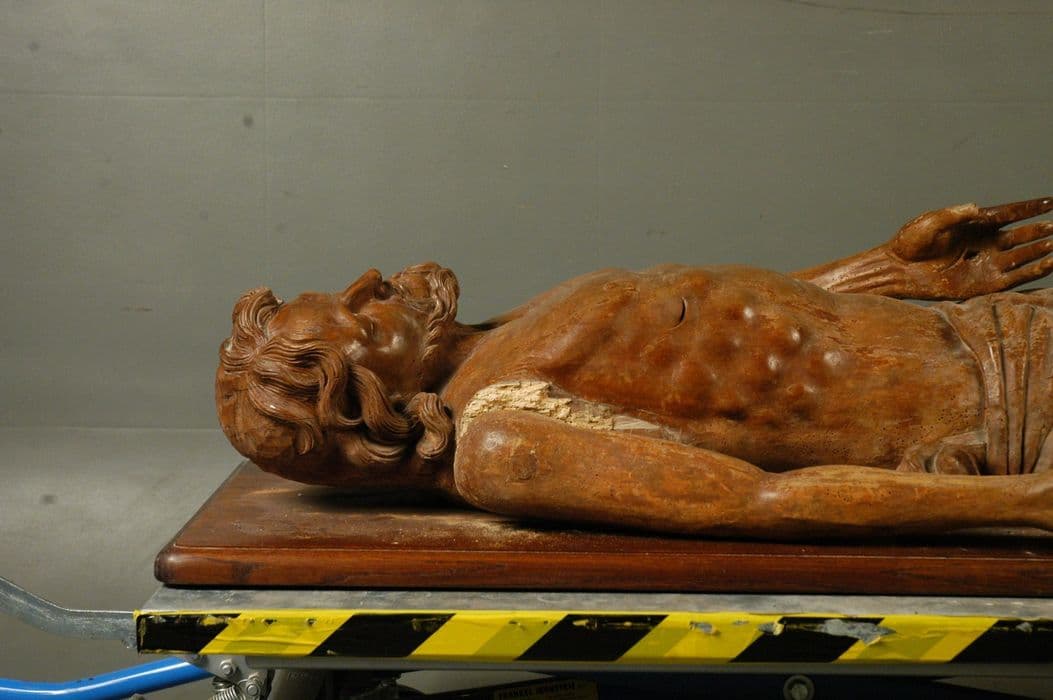 statue : Christ gisant, vue partielle