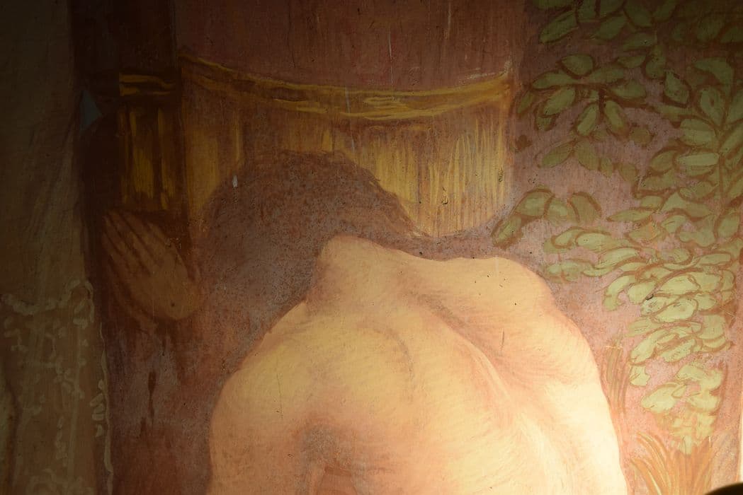 peinture monumentale : Félix qui a reçu les reliques dans sa maison est miraculeusement guéri en ce lieu même, détail