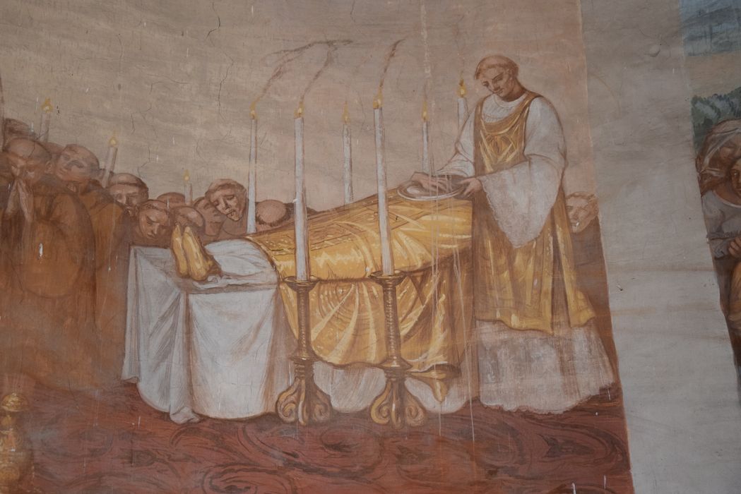 peinture monumentale : A l’épreuve proposée par le roi la tête et la main de saint Malo se séparent de son corps, vue partielle