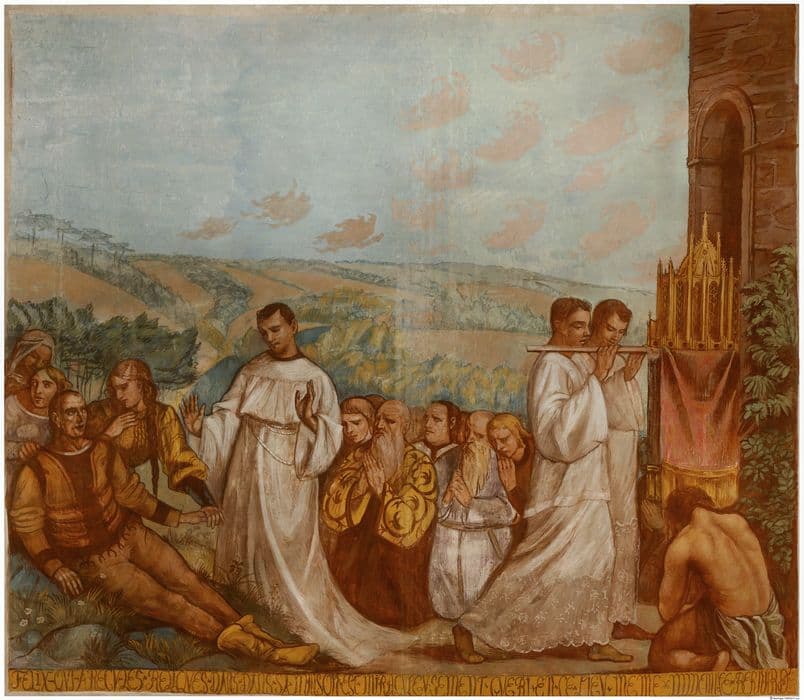 POP | Plateforme ouverte du patrimoinepeinture monumentale : Félix qui a reçu les reliques dans sa maison est miraculeusement guéri en ce lieu même, détail