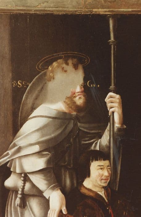 POP | Plateforme ouverte du patrimoinetableau : la Rencontre d'Abraham et de Melchisédech, revers : Saint Guy et un donateur, vue partielle