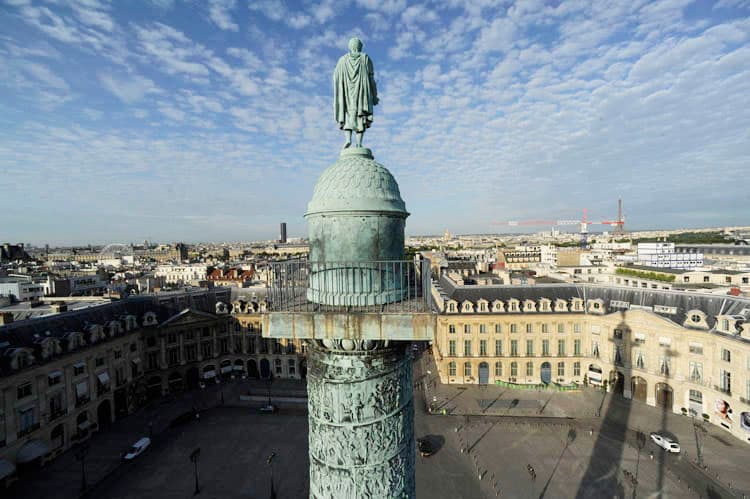 POP | Plateforme ouverte du patrimoineSommet de la colonne et la statue de Napoléon de dos depuis la rue de la Paix