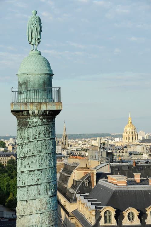 POP | Plateforme ouverte du patrimoineSommet de la colonne et la statue de Napoléon de dos depuis la rue de la Paix. Le dôme des Invalides