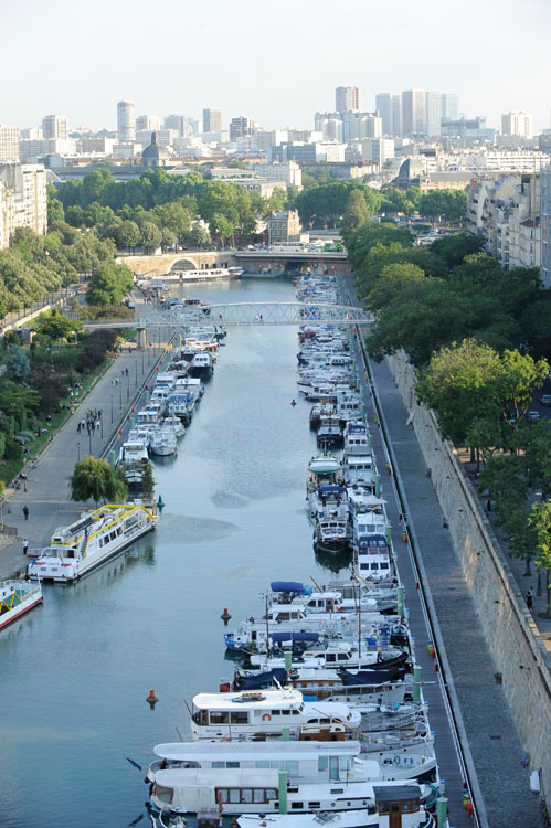 Le bassin de l'Arsenal depuis la place de la Bastille