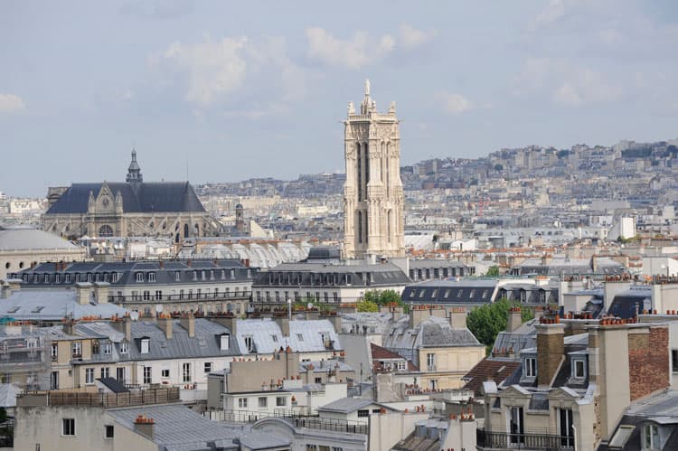 Toits de Paris. La tour Saint-Jacques et l'église Saint-Eustache depuis le pont de l'Archevêché