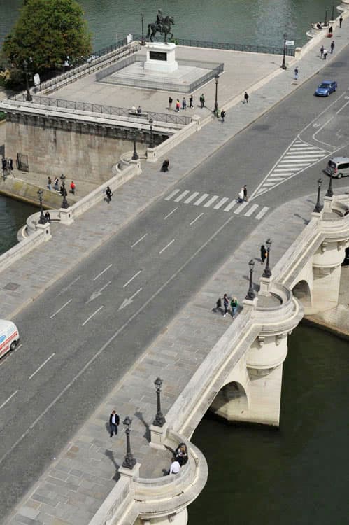 POP | Plateforme ouverte du patrimoineLa place du Pont-Neuf et la statue équestre de Henri IV depuis le quai des Grands-Augustins