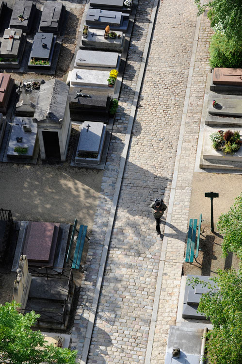 POP | Plateforme ouverte du patrimoineAllée du cimetière et tombes. Vue plongeante et passant