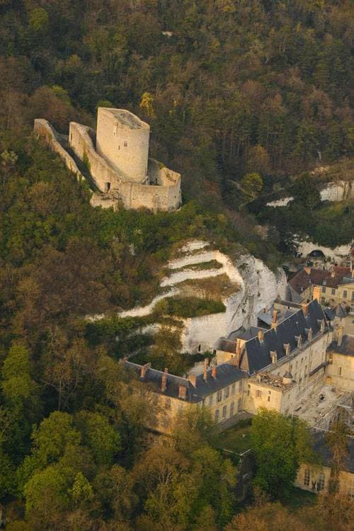 Château de La Roche-Guyon et donjon du château fort depuis le sud-ouest
