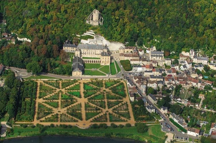 Vue d'ensemble du château de La Roche-Guyon depuis le sud