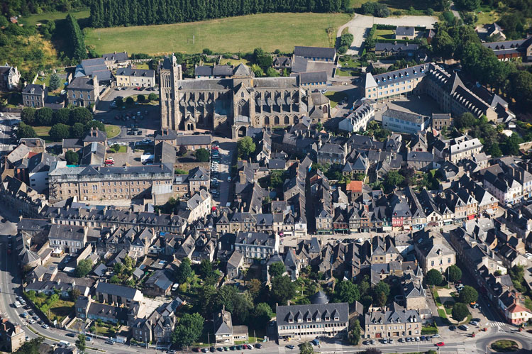 Centre-bourg de Dol-de-Bretagne depuis le sud-est. Cathédrale et collège Saint-Magloire
