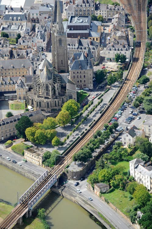 Église de Redon et voies ferrées depuis l'est