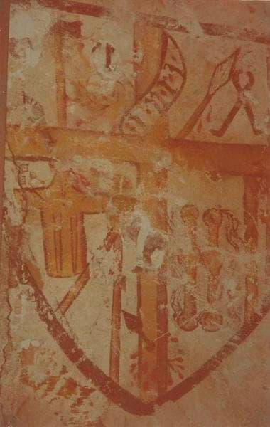détail des peintures murales situées sur le mur derrière le retable du maître-autel