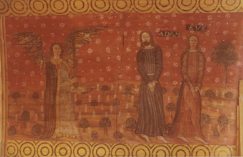 peinture monumentale, lambris de revêtement : scènes de l'ancien et du nouveau testament, vue partielle