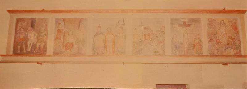 clôture de choeur : Cène (la), Jésus au jardin des oliviers, arrestation (l'), Jésus devant Anne, Jésus bafoué, Jésus devant Caïphe, Jésus devant Pilate, flagellation et le couronnement d'épines (la), Ecce Homo, Jésus tombant sous la croix, crucifixion (la), Résurrection (la), vue partielle