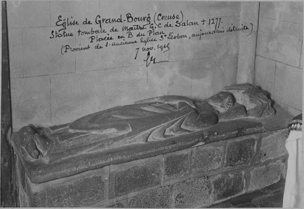 monument funéraire : gisant de maître Gérald, chapelain de Salagnac et chanoine de Limoges, vue générale