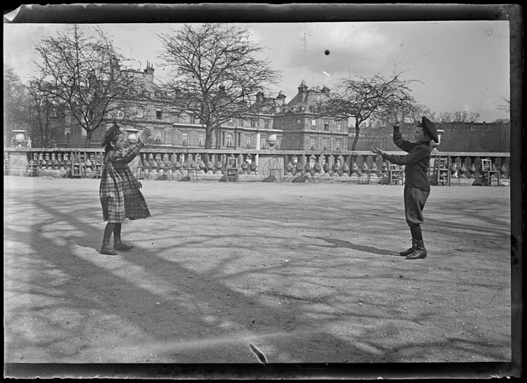 POP | Plateforme ouverte du patrimoineMarthe et Jean Antoine jouant à la balle, le palais en arrière-plan