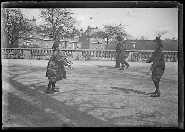 POP | Plateforme ouverte du patrimoineMarthe et Jean Antoine jouant à la balle, le palais en arrière-plan