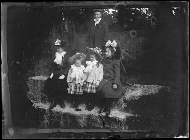 POP | Plateforme ouverte du patrimoineGroupe d'enfants : Marthe Antoine à droite, Jean Antoine portant une casquette en arrière-plan