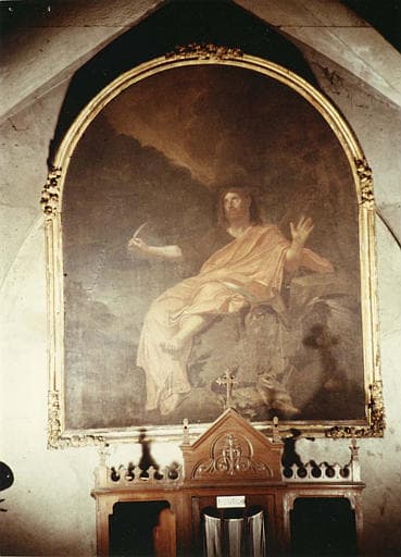 POP | Plateforme ouverte du patrimoineTableau, cadre : 'Saint jean à Patmos', huile sur toile cintrée dans un cadre en bois sculpté de groupes de fleurs, doré