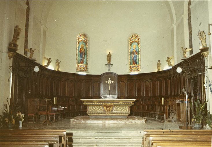 Choeur, lambris de revêtement, stalles en bois sculpté de moulures