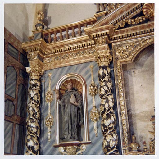 Retable, statue : 'Saint Benoît', bois sculpté, peint, doré