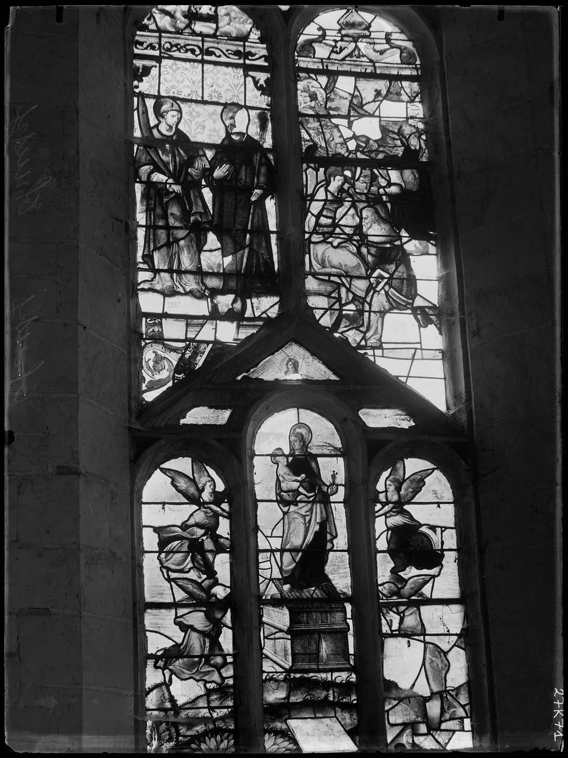 Baie non identifiée : Vierge à l’enfant ; Saints