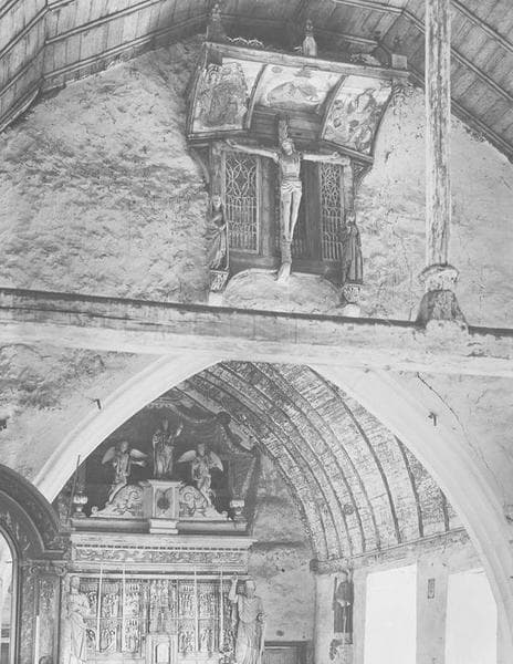 retable et 3 statues : le Christ en croix entre la Vierge et saint Jean, vue générale