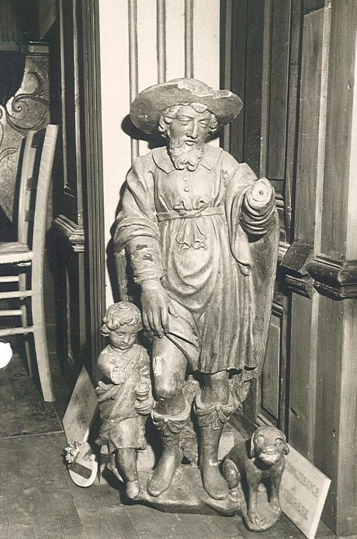 Cliché transmis par la Conservation des antiquités et objets d'art dans le cadre du vol de la statue. Cliché provenant du : « Service régional de l’Inventaire de Normandie, Inventaire général des monuments et richesses artistiques de la France. Fiche établie par Jacques Charles, le 23 mai 1970. »
