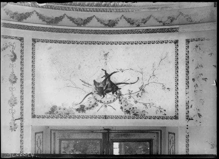 POP | Plateforme ouverte du patrimoineSalon de musique, dessus de porte : lambris peint, décor floral et instruments de musique