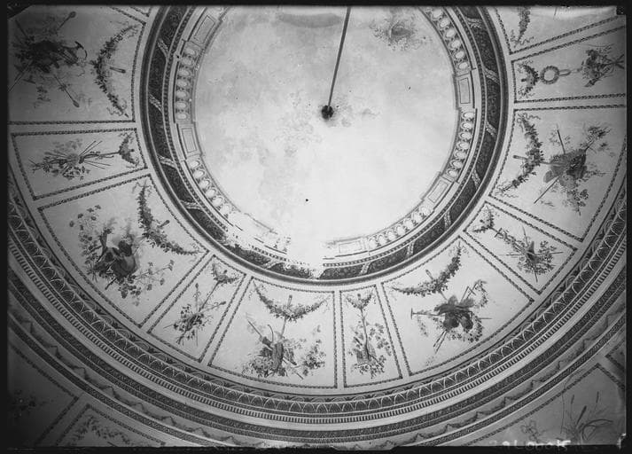 POP | Plateforme ouverte du patrimoineSalon de musique, coupole du plafond : lambris peint, décor floral et instruments de musique