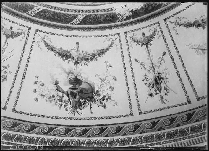 POP | Plateforme ouverte du patrimoineSalon de musique, plafond : lambris peint, décor floral et instruments de musique