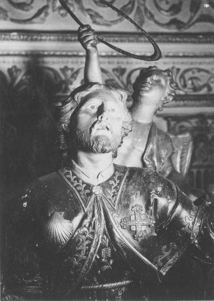 groupe sculpté de procession : Saint Roch entouré d'anges, détail