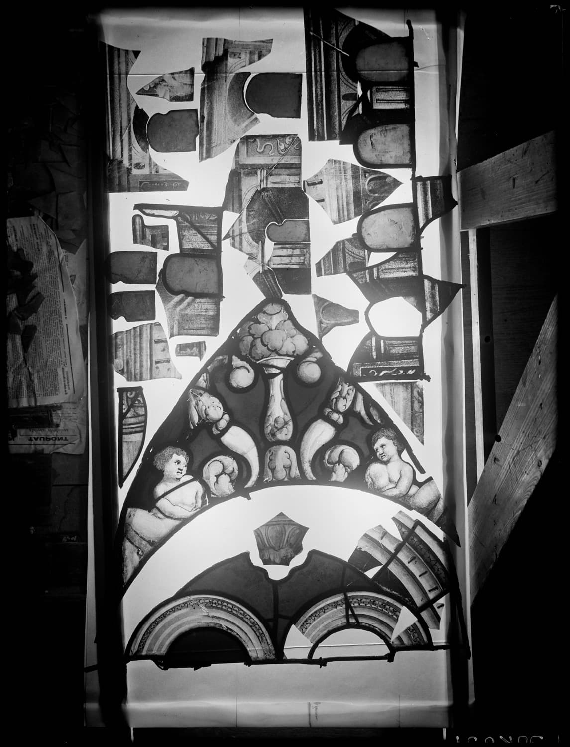 Avant restauration. 1969-1970 : date de restauration du vitrail.