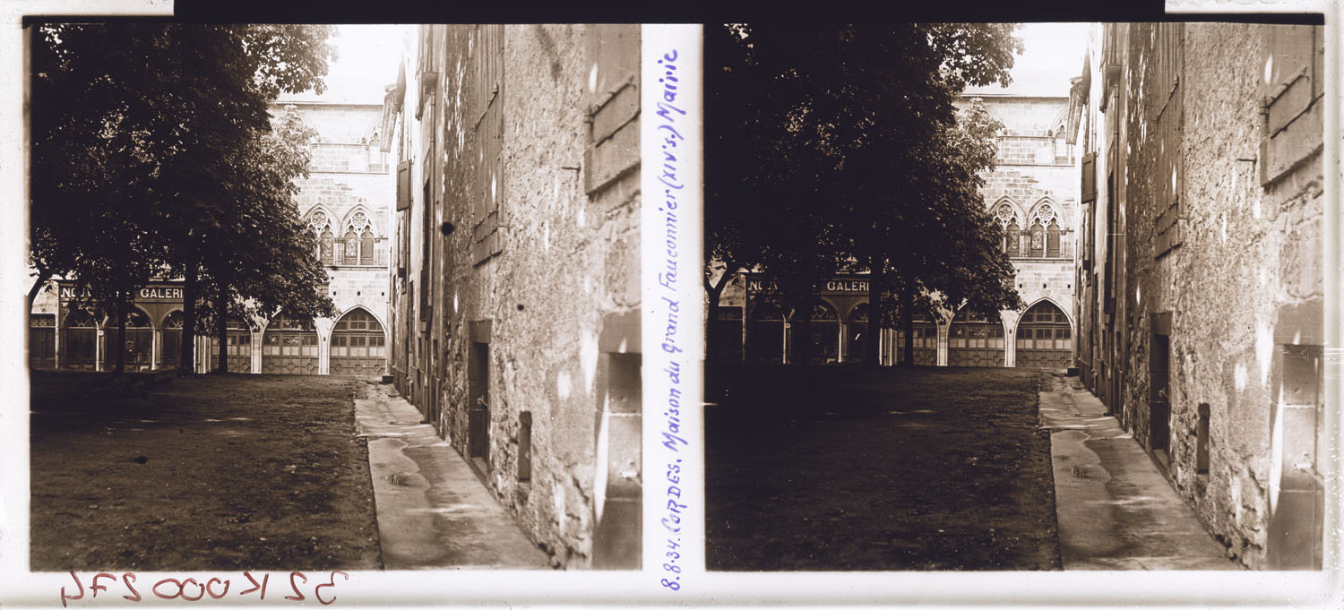 À l’encre, sur la plaque de verre : Maison du Grand Fauconnier (XIVe siècle), mairie
