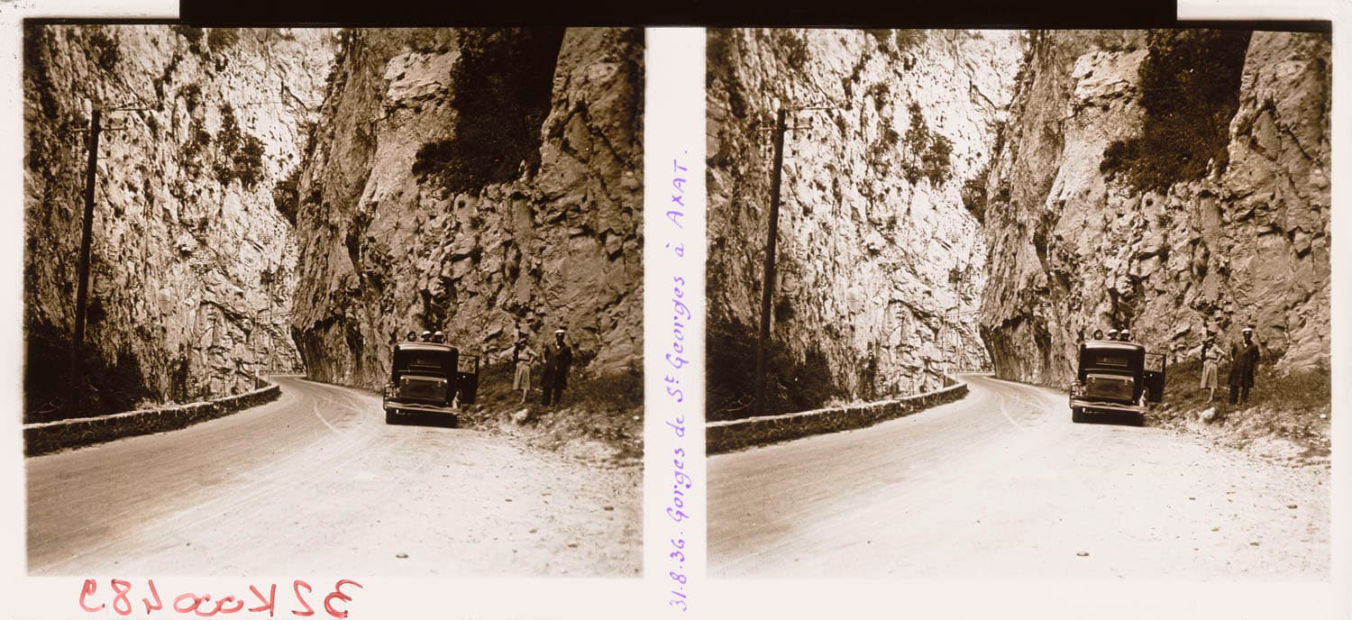 Gorges de Saint-Georges, cinq passagers posant à côté d’une voiture