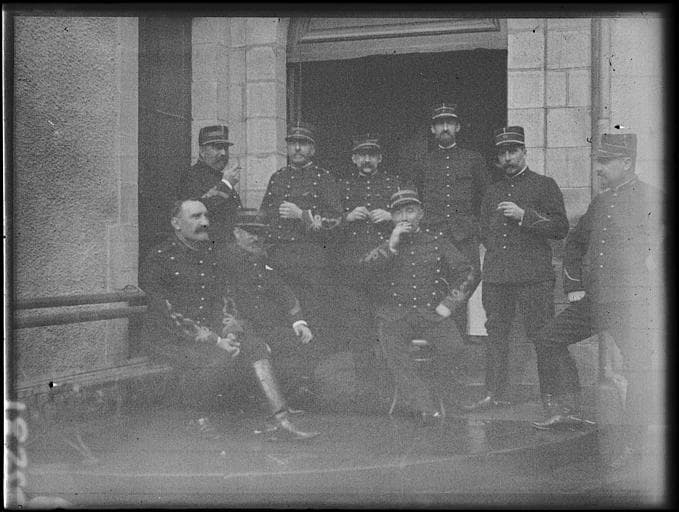POP | Plateforme ouverte du patrimoineCour, devant le porche d'entrée, sur le perron : groupe d'officiers du 11e régiment territorial d'artillerie