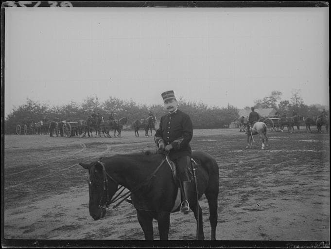 POP | Plateforme ouverte du patrimoinePolygone, campagne : manoeuvres d'artillerie, officier à cheval