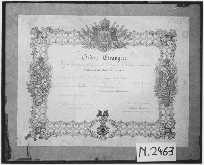 POP | Plateforme ouverte du patrimoineestampe : Diplome de Chevalier de l’Ordre de Leopold décernné à Edmond Planchut par Napoléon III
