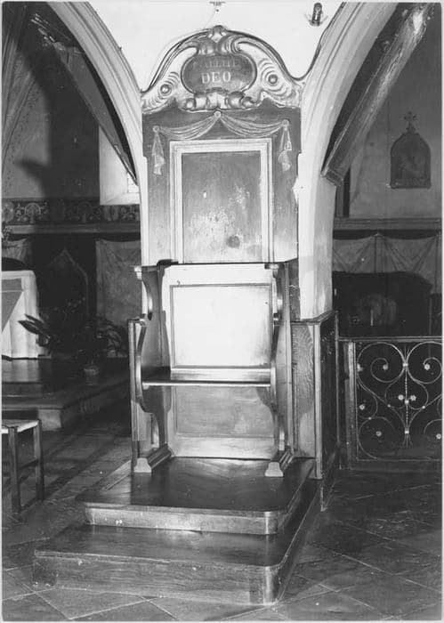 Photographie fournie par le conservateur des antiquités et des objets d'art. Photographie conservée dans les armoires du service de la documentation des objets mobiliers.