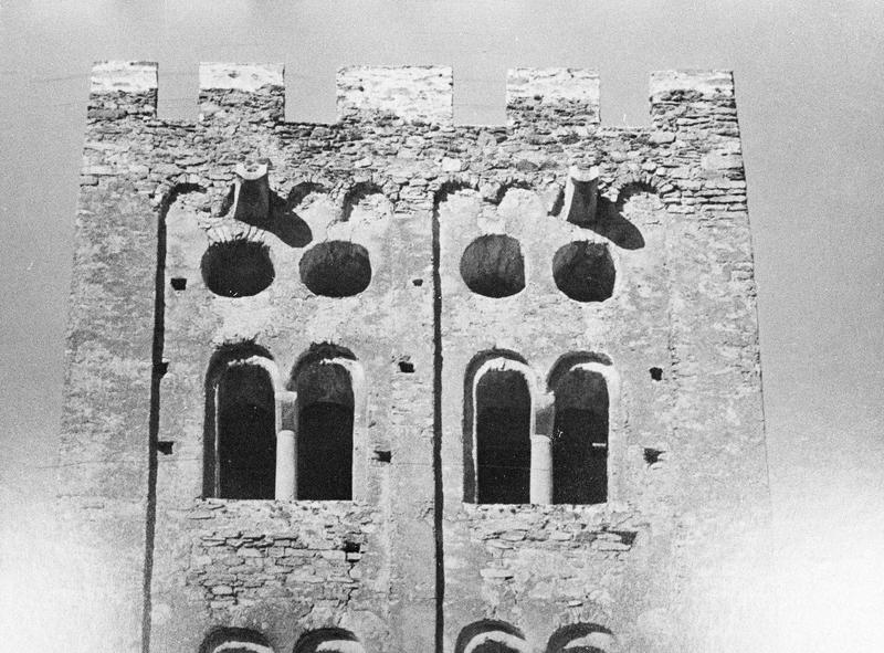 POP | Plateforme ouverte du patrimoinePartie supérieure du clocher percée de baies géminées surmontées d'oculi et crénelage, côté sud