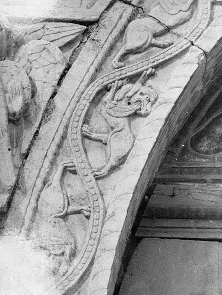 POP | Plateforme ouverte du patrimoineMaison abbatiale : portail sculpté, détail du claveau gauche orné de griffons (tympan transféré dans la galerie du cloître)