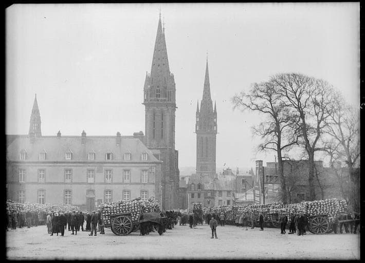 POP | Plateforme ouverte du patrimoineSur la place charettes remplies de choux fleurs et paysans