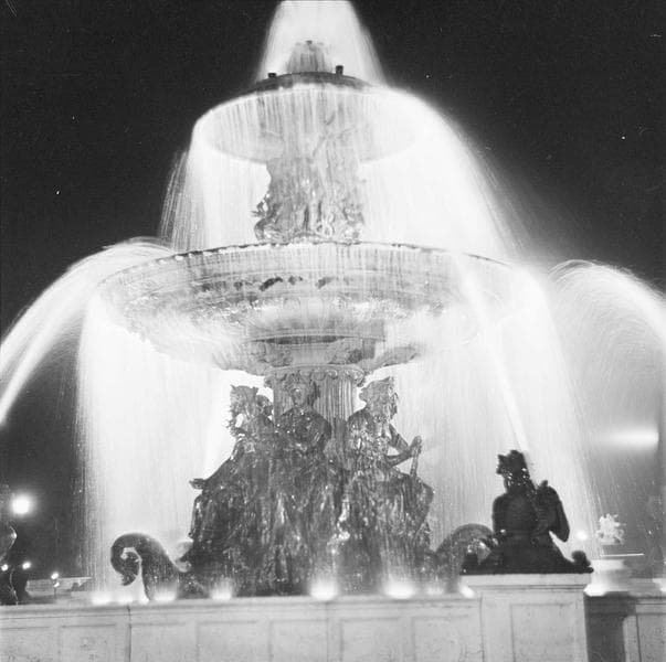 [Une des fontaines de la place de la Concorde, de nuit]