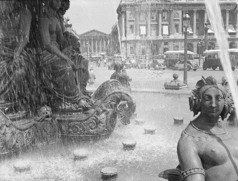 [La fontaine des Fleuves ; l'hôtel de la Marine et l'église de la Madeleine à l'arrière-plan]